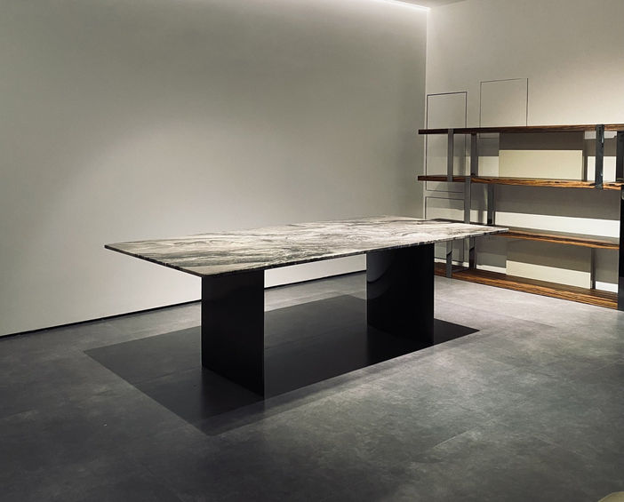 Brushed matte antique bronze stainless steel base + Natural maeble