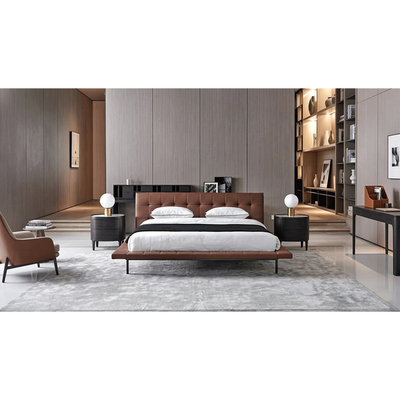 Solid wood frame + High-density eco-friendly foam + Stainless steel gunmetal brushed hardware legs + Leather/Fabric